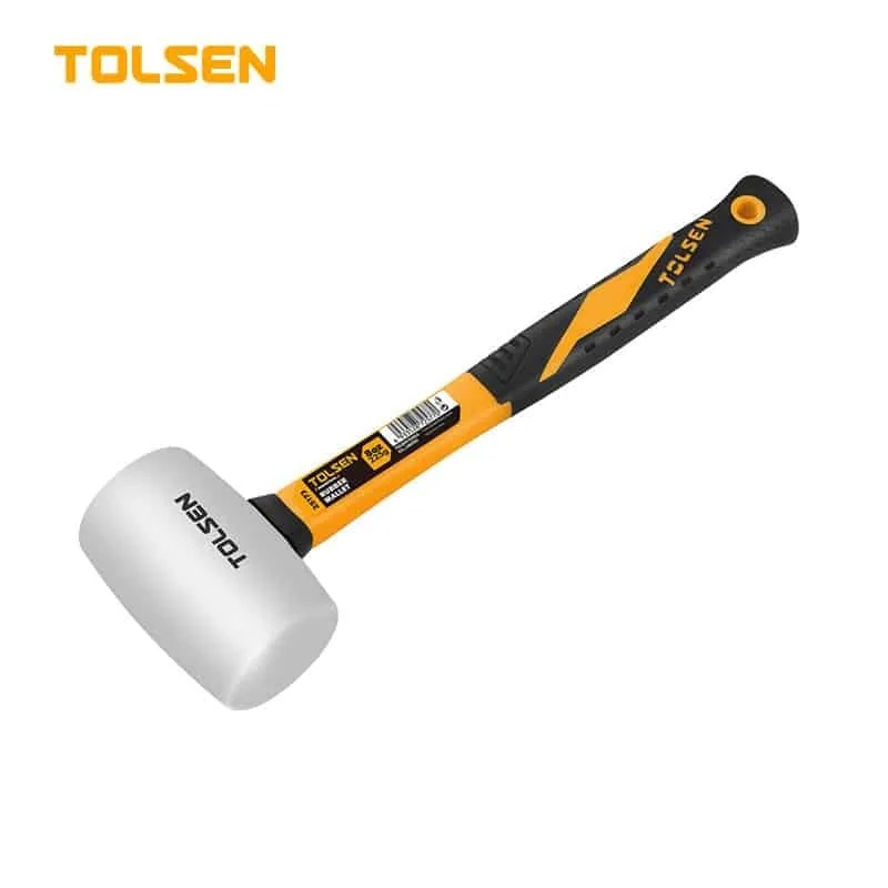 25177/Молоток резиновый 675г БЕЛАЯ РЕЗИНА, фиберглассовая ручка с обрезиненным покрытием, TOLSEN